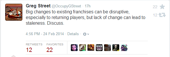 So while Greg’s tweet sounds simple, the crux of the argument is not that changes are / are not required. It’s that the changes implemented must be quality changes that improve the game yet maintain a core vision and cohesiveness.