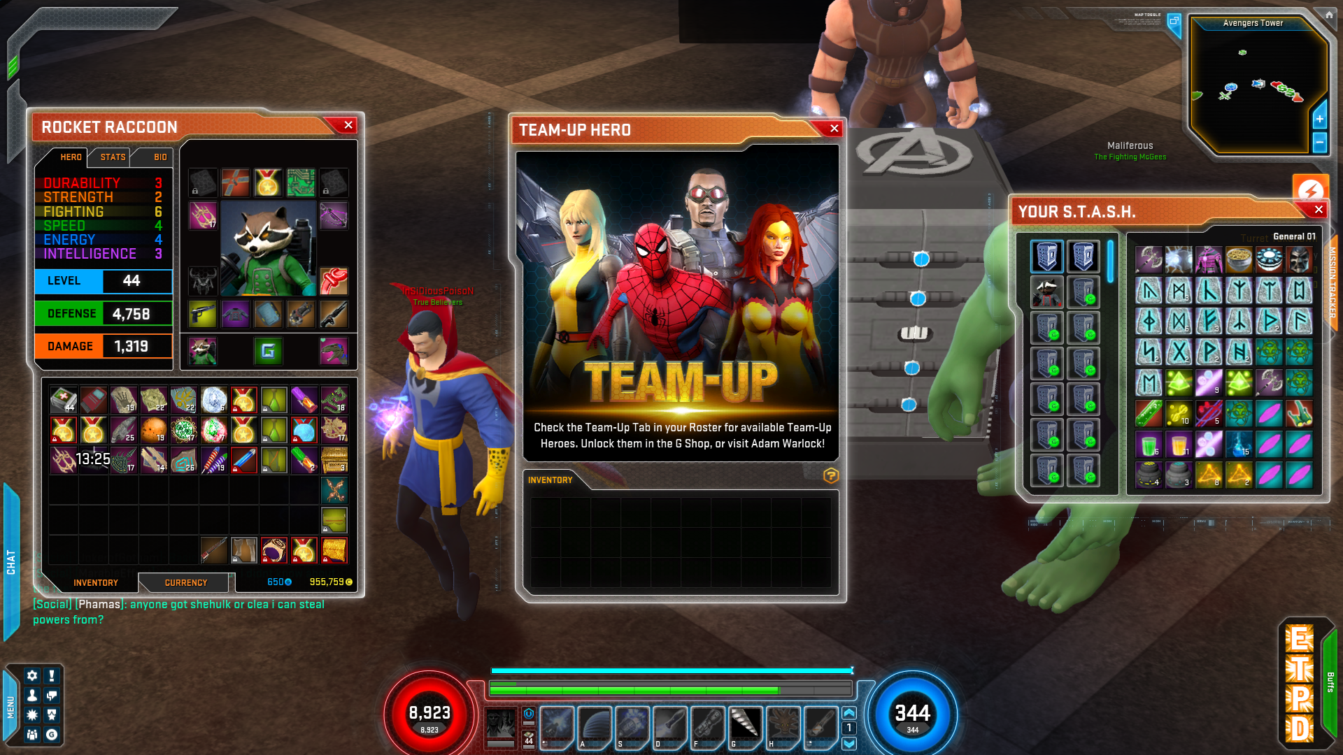 Plus, there have been so many additions in the nearly 2 years since launch it’s hard to recognize everything.  Plenty of end-game activites, legendary quests, terminals, raids, group missions, uniques, crafting, legendaries, cosmic gear, team ups, rune words, enchants…crazy.  You see the gear slots above on the left around Rocket?   When the game launched there were 8.  Just so many ways to customize.