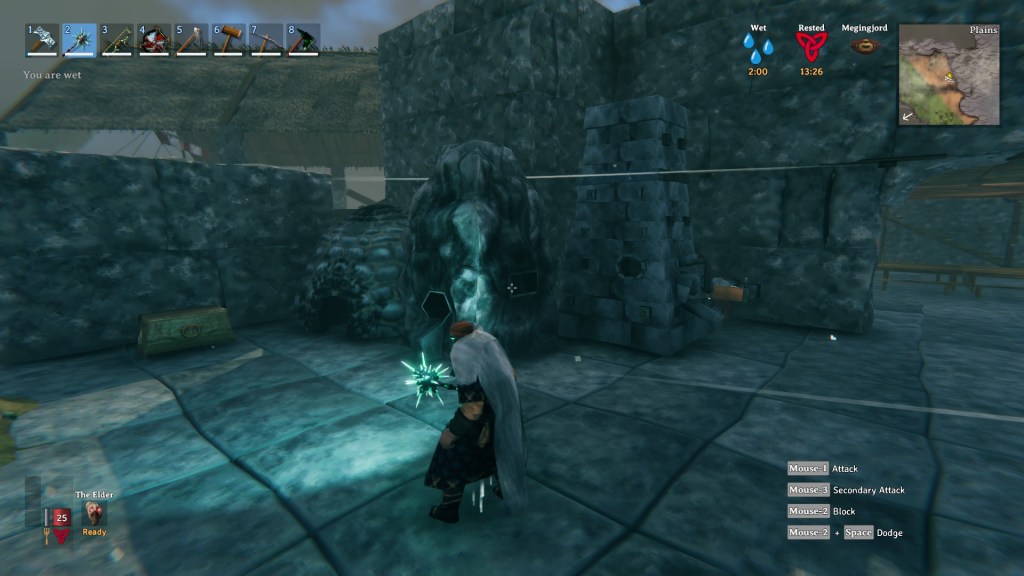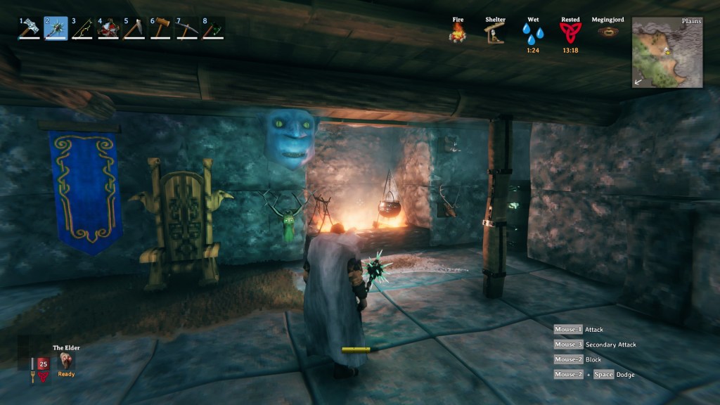 While I often gripe about the workbench needing shelter, this sole item is really the fundamental part of building anything in Valheim. Shelter is not just a wall, or a roof, it’s a combination of those things. The broken down huts strewn across the Meadows give you an idea as to what a build could look like, and it only takes a few extra wood to get those stable.