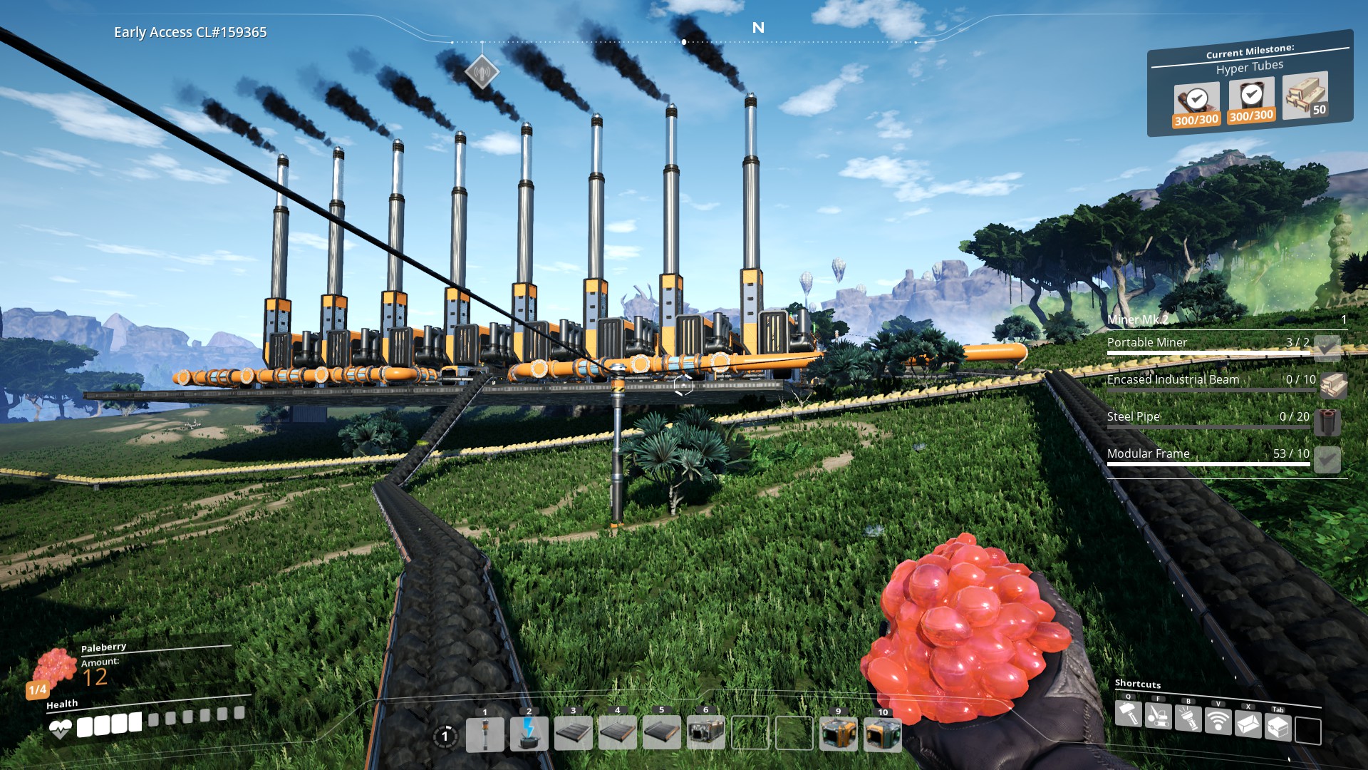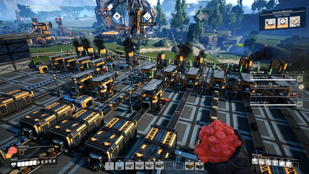 Steam says I have 24 hrs in, and I’m trying to fill up the items for the next phase of the Space Elevator to unlock ranks 5-6 research. If that means nothing to you, Satisfactory has 4 main “phases”, blocked into sets of 2 ranks of research. 0 is the intro, 1-2 are the starter, 3-4 are the basic (coal + steel), 5-6 are mid (oil), and 7-8 are the end (nuclear). So I guess I’m at the end of the basic phase.