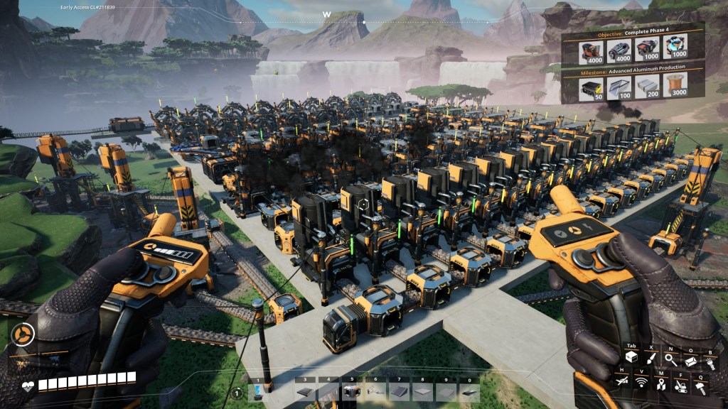 I gave Satisfactory a shot about a year ago. It’s what you’d get if you put Factorio into first person. Or conceptually it is. What Factorio does extremely well is scale the logistical challenge. The first logistics chain is complicated and rewarding, and the next one needs that first plus another. It compounds the logistics and by the end you’re running hundreds of machines to make thousands (if not millions) of things. Dyson Sphere Program is as close as you’re going to get to Factorio in that regard, with a 3D 3rd person view.