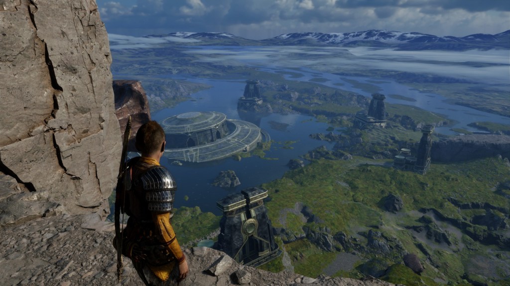 Having more worlds to explore is fun and jaw dropping. The art and style applied to every realm is magnificient, and more often than not you’ll face some new vista that makes you take pause. Vanaheim in particular is impressive as you scale a massive wall and look out upon the realm. The travel within a realm has more options, and each has an open area (or more than one) that is filled with sidequests and things to discover.