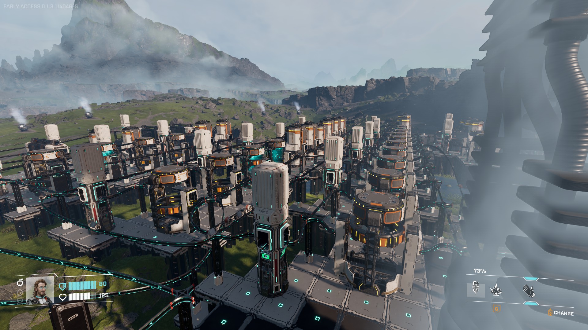 Placing a building requires you to be consistent with the Z axis (height) and cannot float in the air (stability). This is the only factory game I know of with this restriction, and is a challenge I’ll explain later. Basically, this limitation restricts any creativity or mega bases.