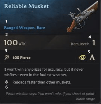 - This is the actual damage you will deal, and it’s relative to other items at the same level. A level 1 musket will deal more damage than a level 1 pistol.
