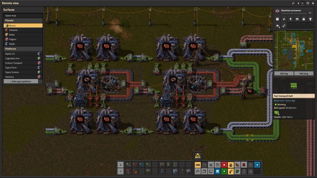 Rates: This is on a per step basis, where a building has a maximum input/output rate, and belts have a maximum throughput rate. You can often upgrade these, but you’ll still find spots where you have too much output and not enough input. While it’s often easy to build another building, expanding transport layers can be very difficult. Moving more items between planets in Factorio often means needing more ships, which are not cheap to build.