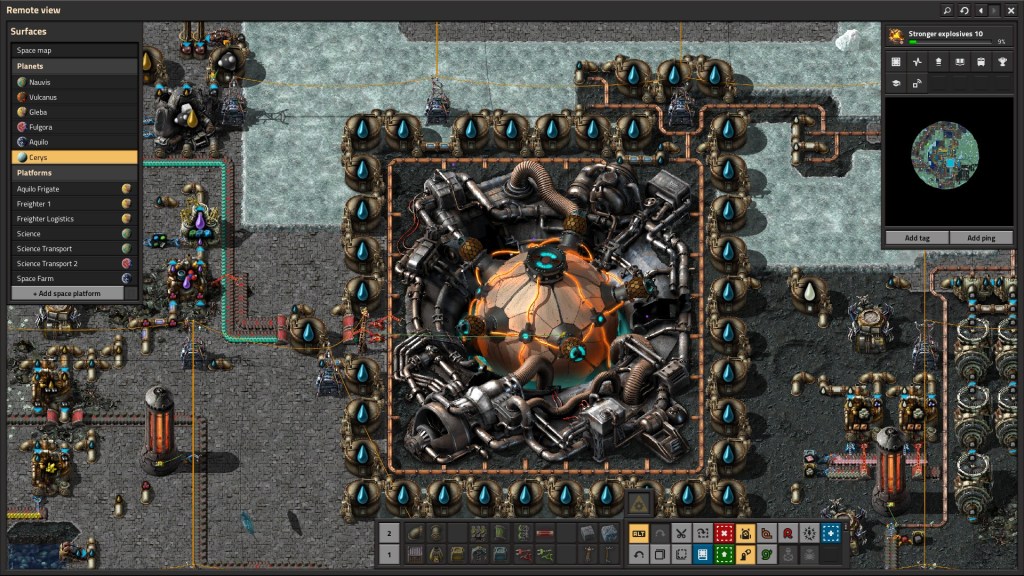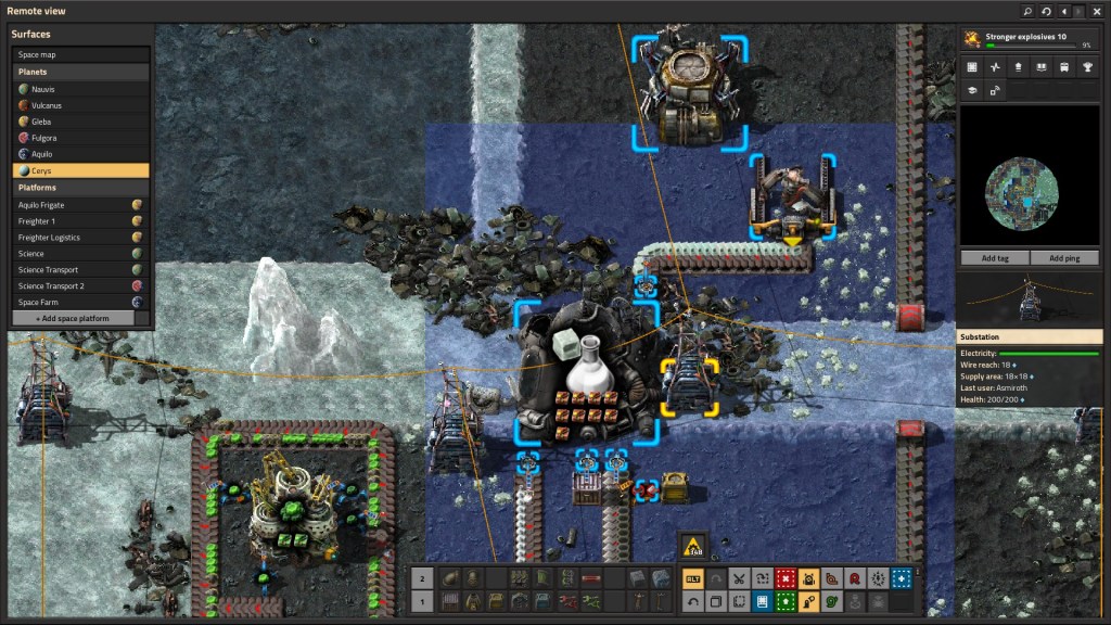 Once you have those pieces sorted out, the immediate priority is building robots through lubricants. Roboports are easy enough to create and having a dozen logistic bots completely trivializes all the puzzle pieces. Heating towers + plutonium problems all go away. Collecting asteroid chunks is 100% automated. Cerys factories can be easily automated. You’ve effectively solved the planet and can move on…