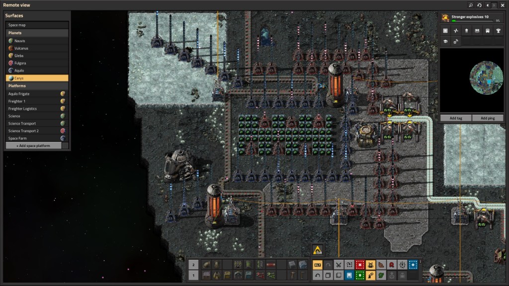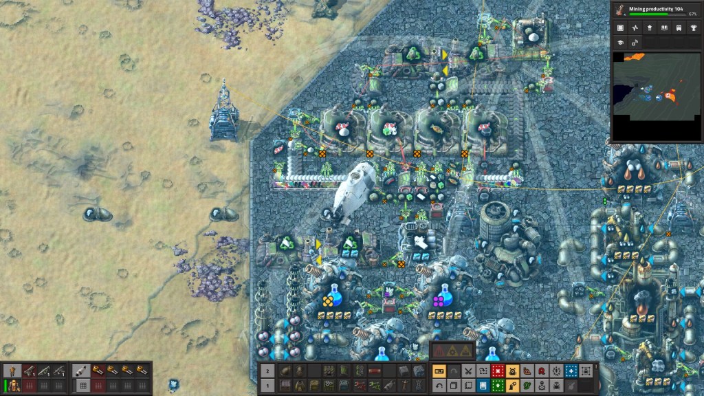 I rather enjoyed the puzzle aspects and the need to really be aware of the total environment. Expanding the available area takes a while to sort out in any sustainable manner. It’s fun to have different things to sort out without the typical toolkit of buses and robots. Honestly it reminds me more of the first time I played Factorio and just trying to figure out how to get 2 buildings to talk to each other without me being involved.