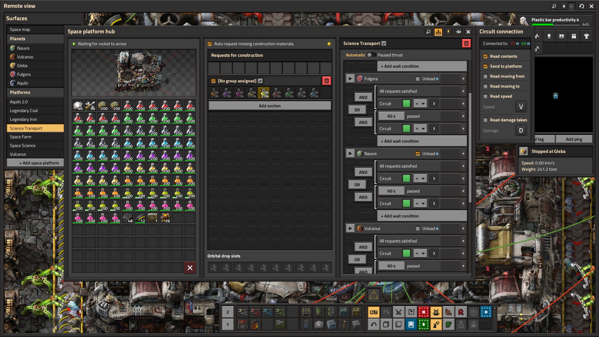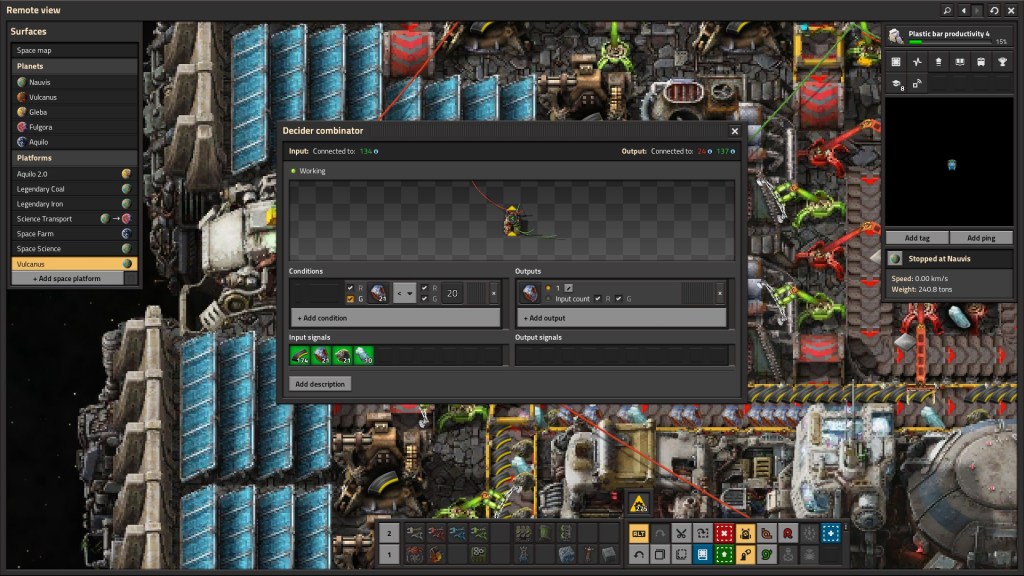 There really isn’t much here to be honest. You get a new building early on that enables shipping of material to the space station (this building doesn’t require inserters or power, which speaks volumes to game design choices), which makes a number go up. The space station itself has no interaction outside of a menu. What the dev stream has shown seems like a precursor to something larger, which still seems like on the edge of potential.