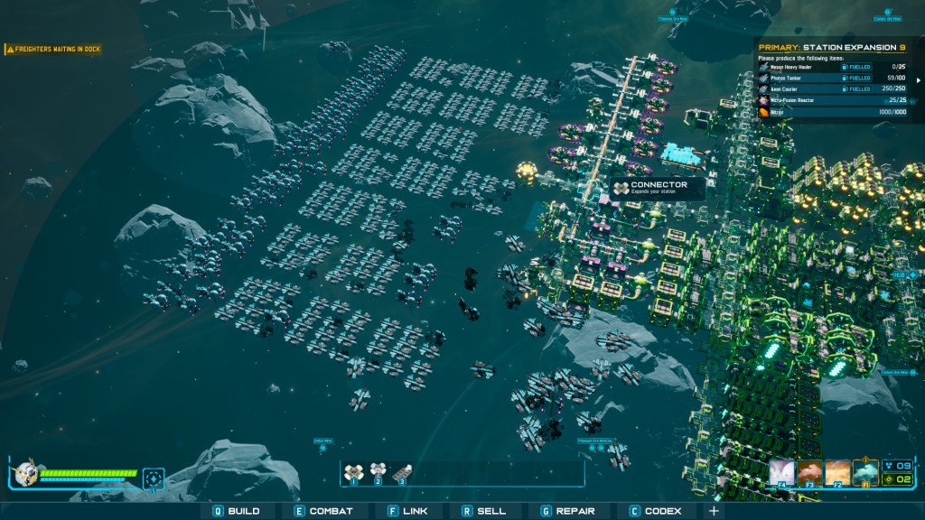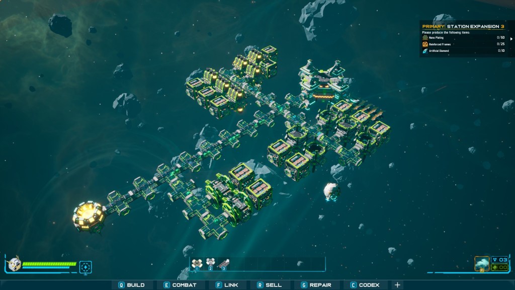 As an EA game, I’ve had my fill for a while. The main quests up til about level 8 are a good exploration of all the meaningful mechanics. After that point, scaling of logistics becomes simply too painful to manage. To reach the next step, I’d need to fill in zone 2 with Hydrogen Farms to build an infinite power supply field for every other zone, with 1 warp station per product type, which would then make a mega station.
