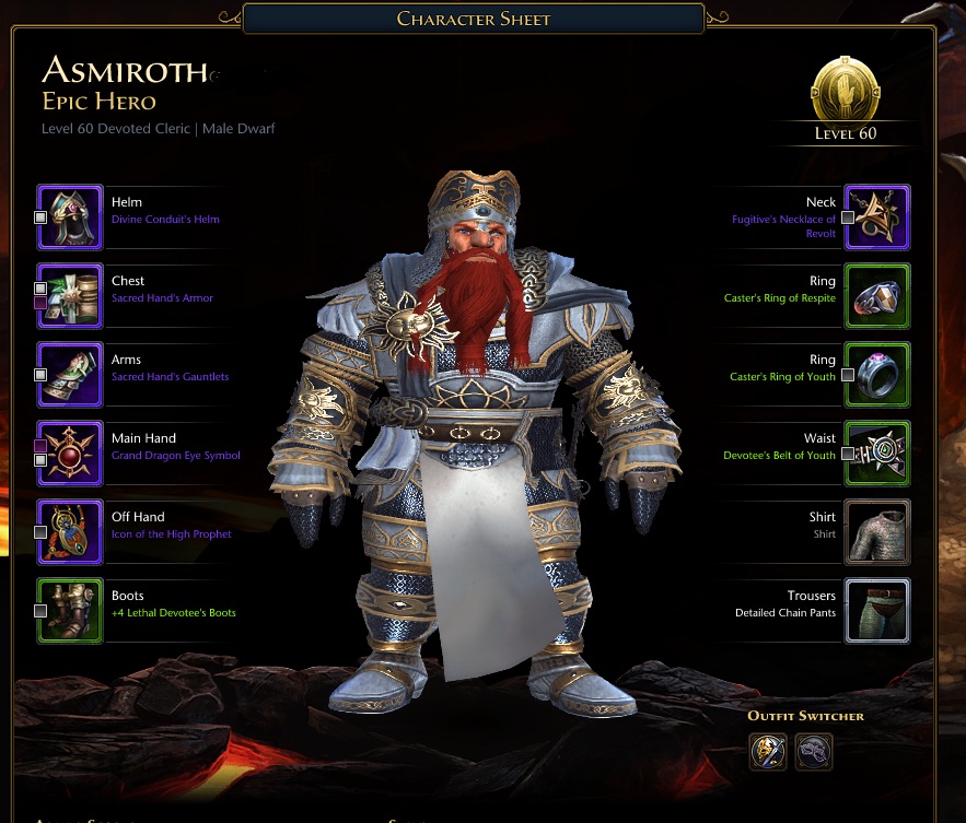 The picture is from the web portal to the game.  Once you hit 60, the “end game” opens up and it’s gated with a GearScore (yes, that’s the name).  It’s a score that adds your defense and offense together.  When I hit 60, I didn’t have anywhere near enough GS to enter any top tier dungeon.  So I did what anyone would do, I went shopping!